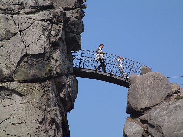 Ein paar Mutige in luftiger Höhe auf den Externsteinen |