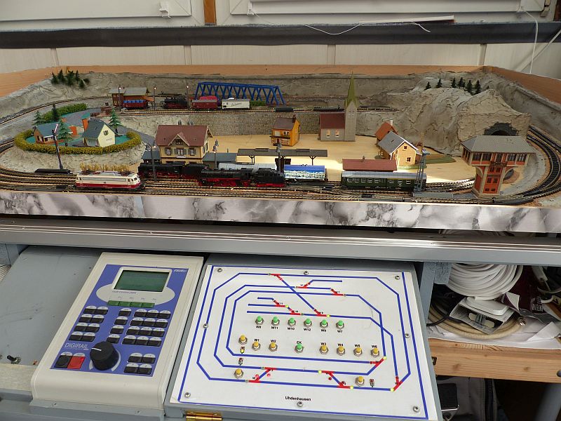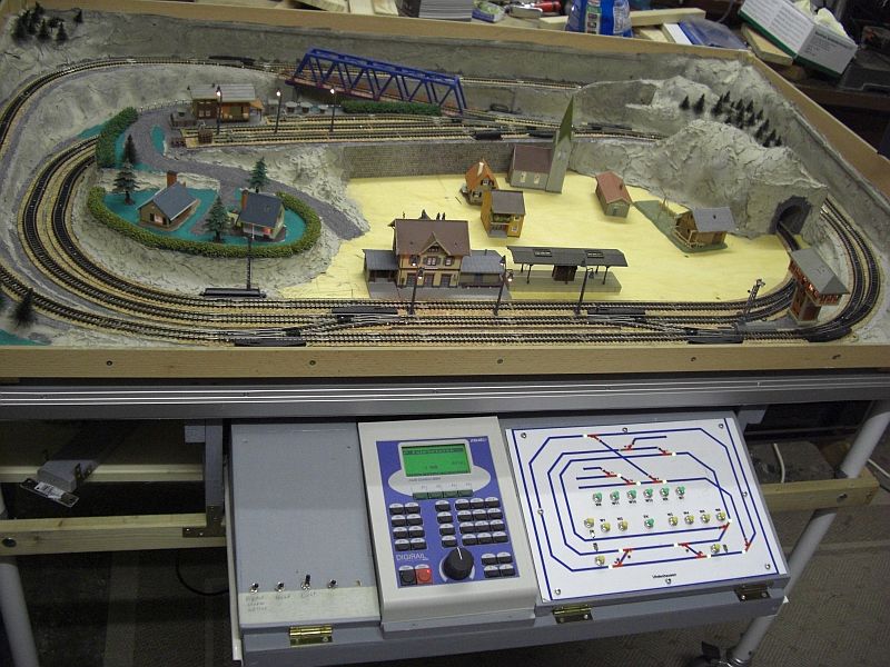Eine kleine Modellbahn Spur N, Computergesteuert. Gesteuert wird die Bahn durch eine Selectric Digital-Steuerung