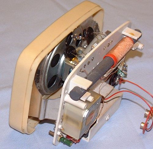 Innenleben des Transitor-Kleinempfängers mit riesigen Thomson Transistoren |
